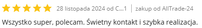 *Wszystkie opinie są prawdziwe, napisane przez prawdziwych klientów którzy zakupili nasze produkty. Do zweryfikowania na naszym allegro: https://business.allegro.pl/uzytkownik/AllTrade-24